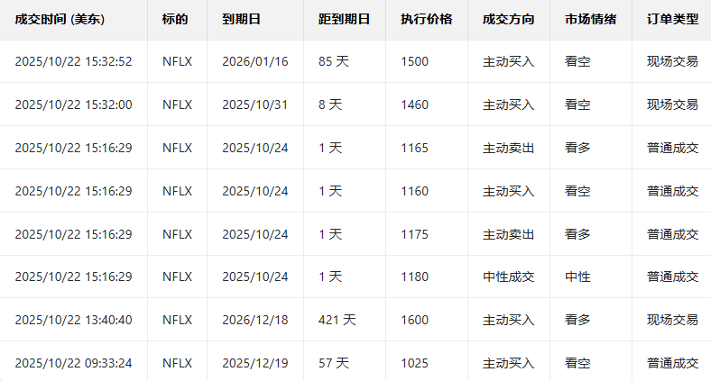 二、美股期权成交榜1、 奈飞上一交易日跌10.07%,前一日认沽/认购比例略有下行,成交量上行,多头交易活跃。
